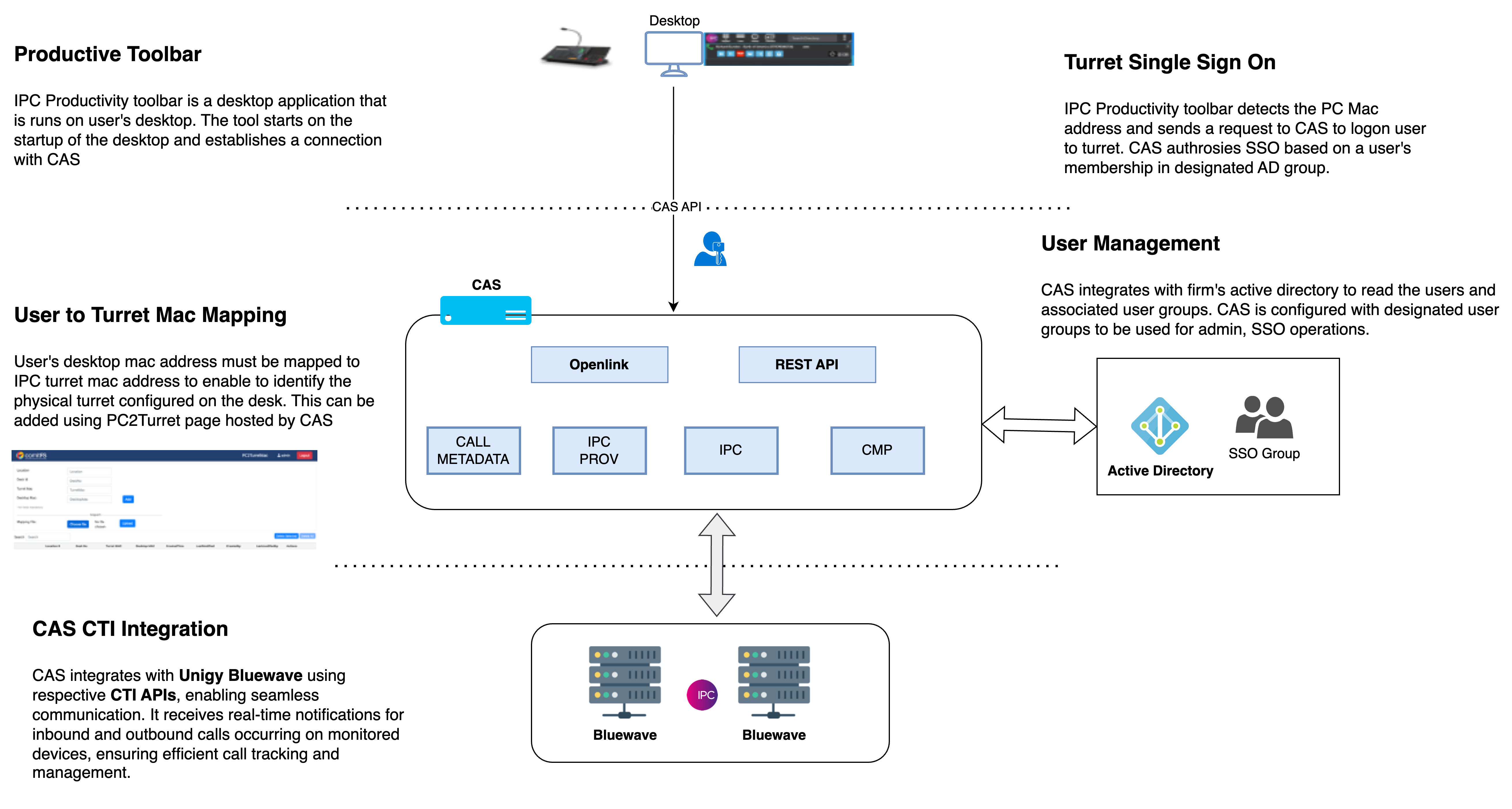A custom integration was developed using CAS Productivity Toolbar’s API and orchestration layer to bridge turret authentication with Microsoft Active Directory: